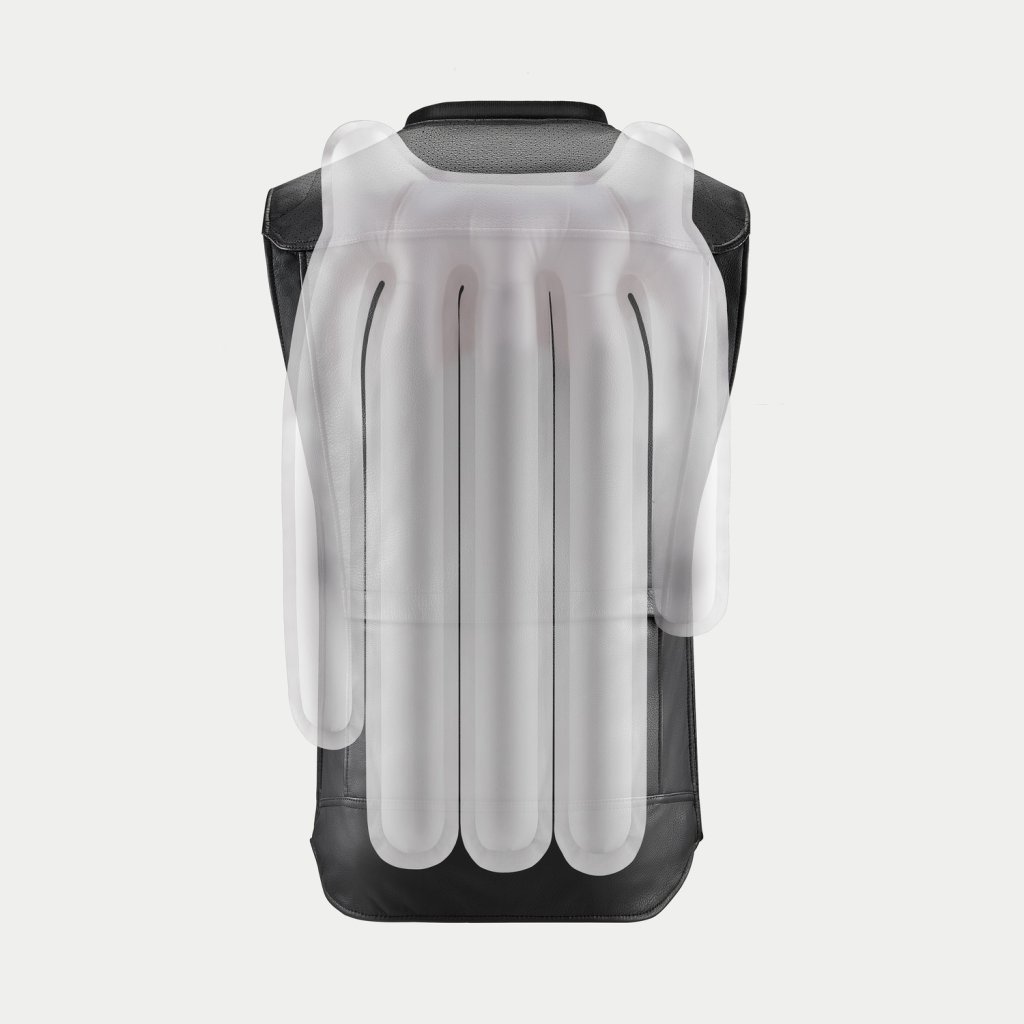 - Autonomní airbagový systém, který ochránní hruď, vrchní část ramen a záda jezdce/spolujezdce.
