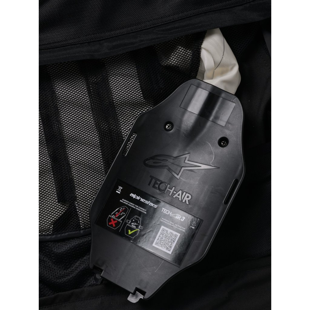 Autonomní, elektronicky řízená airbagová vesta TECH-AIR®3 druhé generace je dalším z přírůstků do skupiny inovací od společnosti ALPINESTARS. Airbagový systém TECH-AIR®3 V2 je sofistikovaný produkt, vycházející ze zkušeností a nasbíraných dat společností ALPINESTARS během mnoha sezon testování autonomních airbagových vest v prostředí závodů MotoGP.