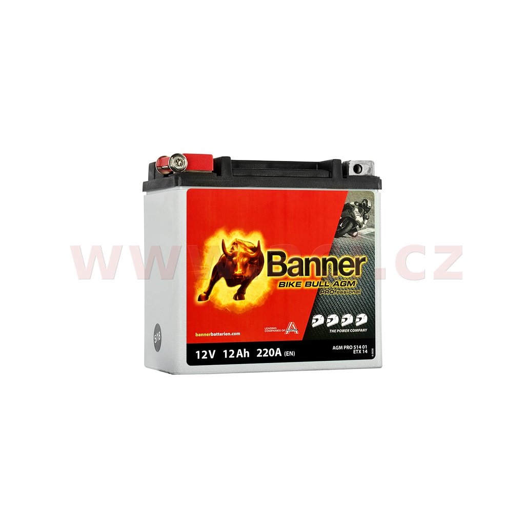 baterie 12V, YTX14-BS, 12Ah, 220A, BANNER Bike Bull AGM PRO 150x88x145