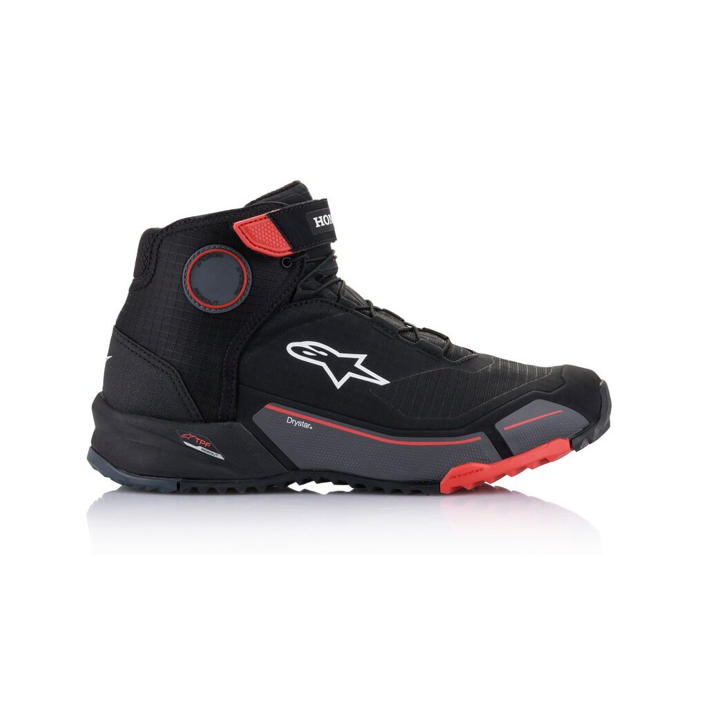 CR-X DRYSTAR® jsou motocyklové boty pro vyjížďkové účely s možností použití i mimo jízdu na motocyklu a zajištění celodenního komfortu během chůze. Boty CR-X spojují některé vlastnosti běžeckých/vycházkových bot a poskytují tak přiléhavý střih konstrukce interiéru boty, kloubený s aspektem dostatečného vnitřního objemu pro zajištění komfortu při celodenním používání i mimo jízdu na motocyklu. Klimatická membrána DRYSTAR® zajišťuje vodotěsnost a prodyšnost během různorodého počasí. Provedení ve spolupráci se značkou HONDA.