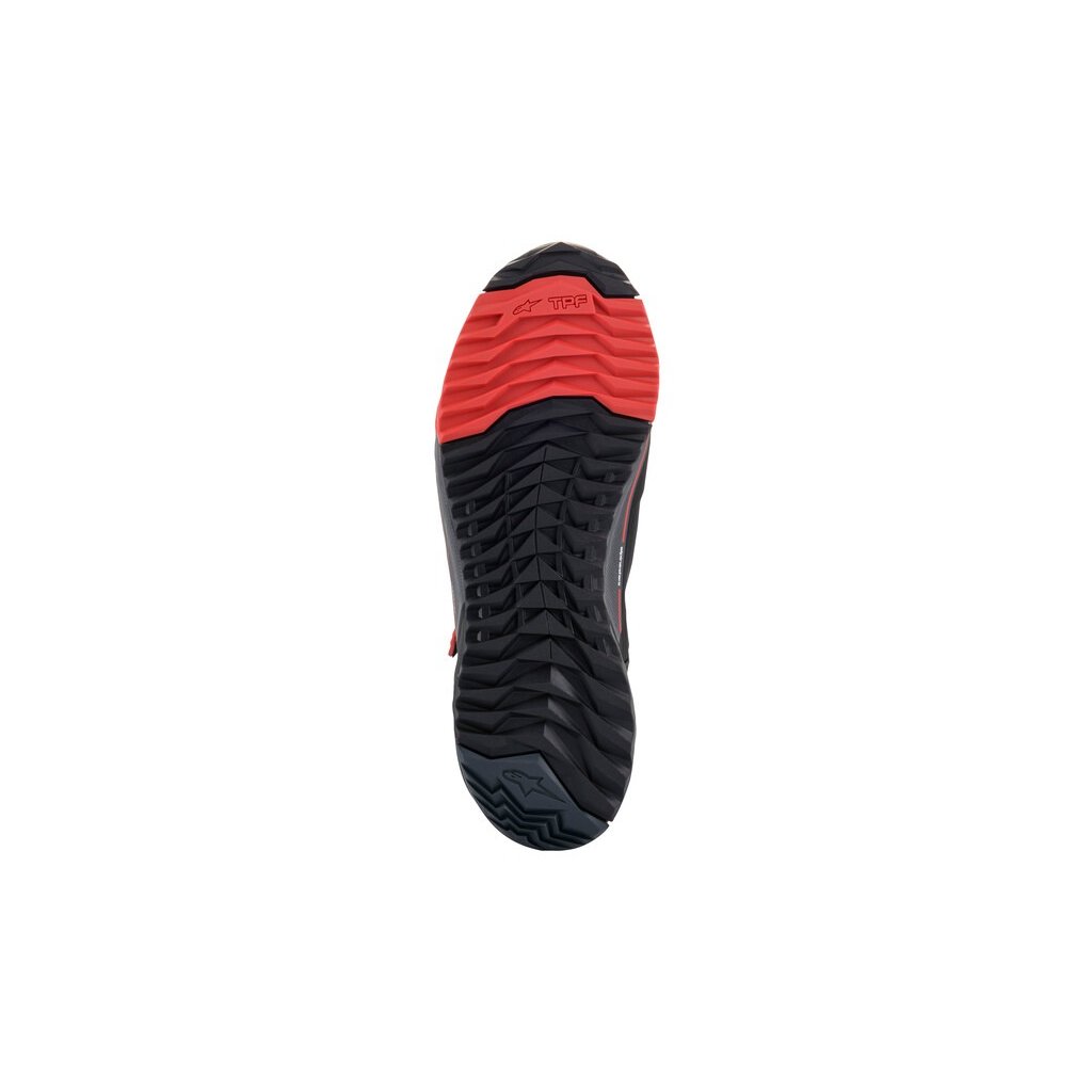 - Unikátní konstrukce celoplošné vyztužující vložky podrážky z TPU plastu pro zajištění maximální ochrany chodidla během jízdy na motocyklu, ale i dostatečné flexibility podrážky při běžné chůzi.