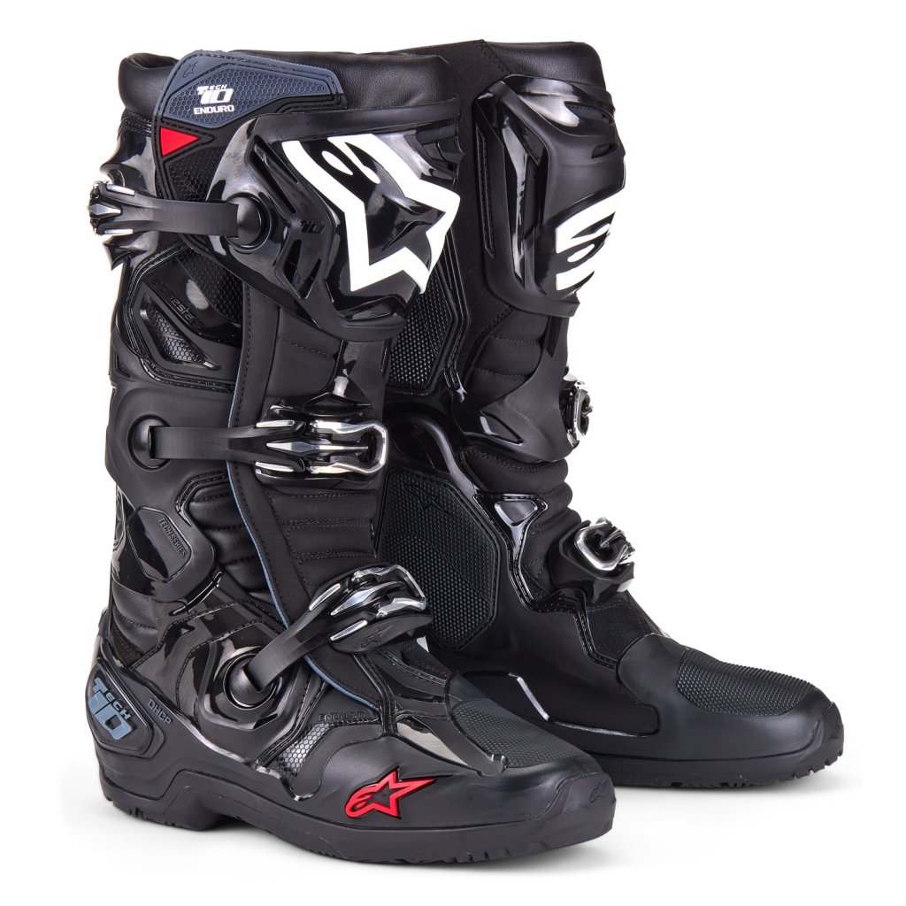 Boty ALPINESTARS TECH 10 jsou vrcholným modelem určeným v prvé řadě pro motokros ježdění. Vývojáři ve společnosti ALPINESTARS nyní nastavují laťku ještě výše a verze TECH 10 ENDURO disponuje kompletně přepracovanou podrážkou, která nabízí lepší soudržnost a grip během hard enduro ježdění. Bota také disponuje přepracovanou vstupní manžetou a prvky ochrany ušitými na míru jízdě v otevřeném terénu.