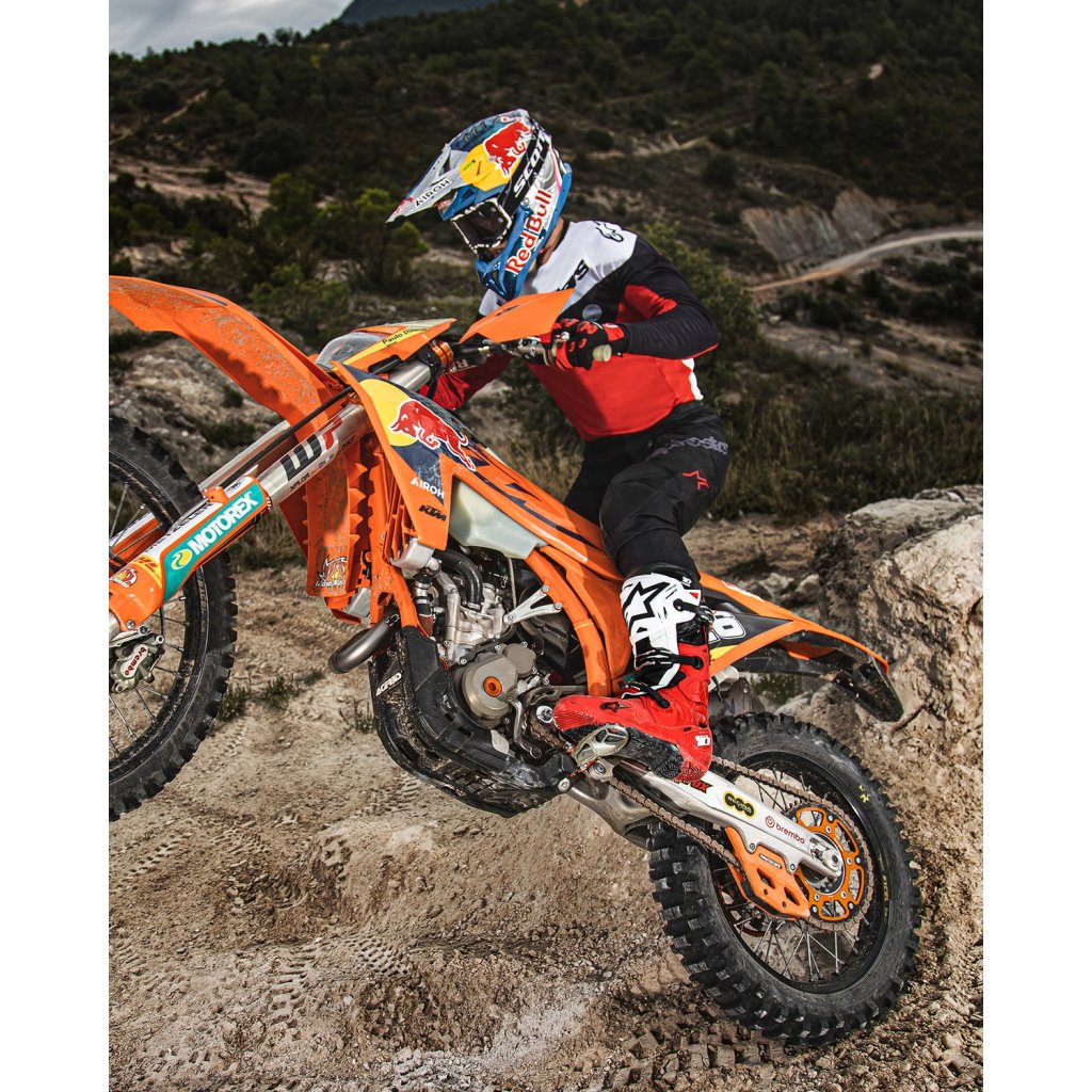 Boty ALPINESTARS TECH 10 jsou vrcholným modelem určeným v prvé řadě pro motokros ježdění. Vývojáři ve společnosti ALPINESTARS nyní nastavují laťku ještě výše a verze TECH 10 ENDURO disponuje kompletně přepracovanou podrážkou, která nabízí lepší soudržnost a grip během hard enduro ježdění. Bota také disponuje přepracovanou vstupní manžetou a prvky ochrany ušitými na míru jízdě v otevřeném terénu.