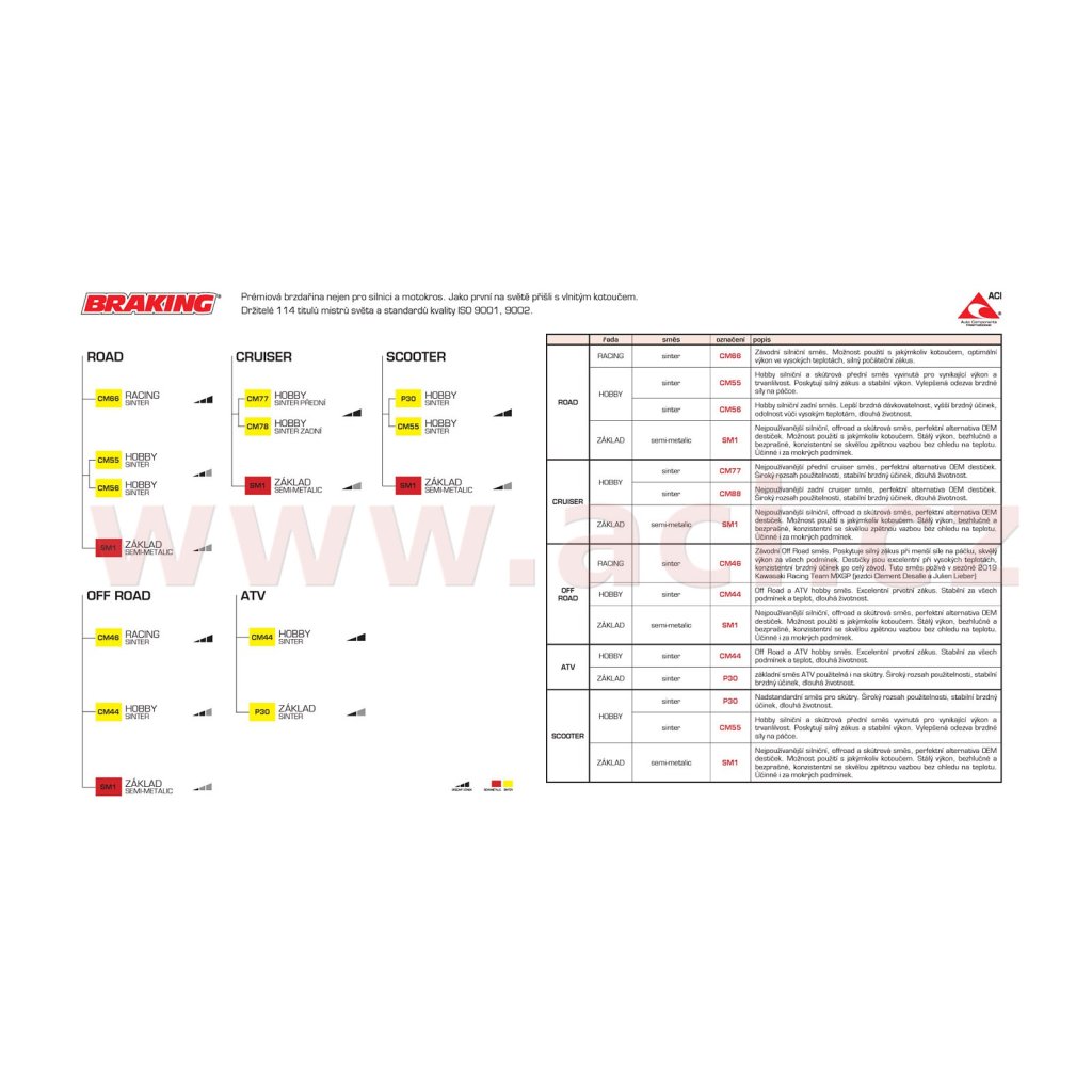 Prémiová značka motocyklové brzdařiny. Směs SM1 - nejpoužívanější silniční, offroad a skútrová směs, perfektní alternativa OEM destiček
