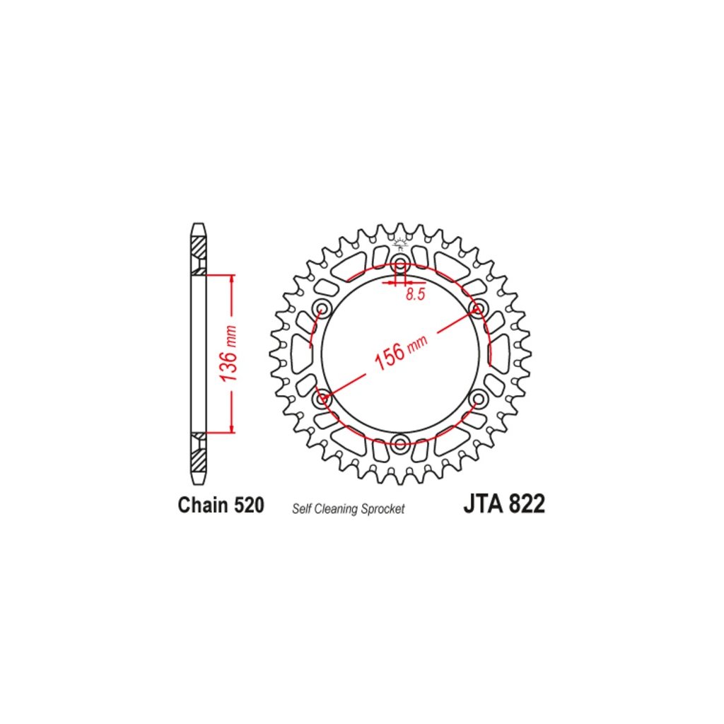 duralová rozeta pro sekundární řetězy typu 520, JT (49 zubů)