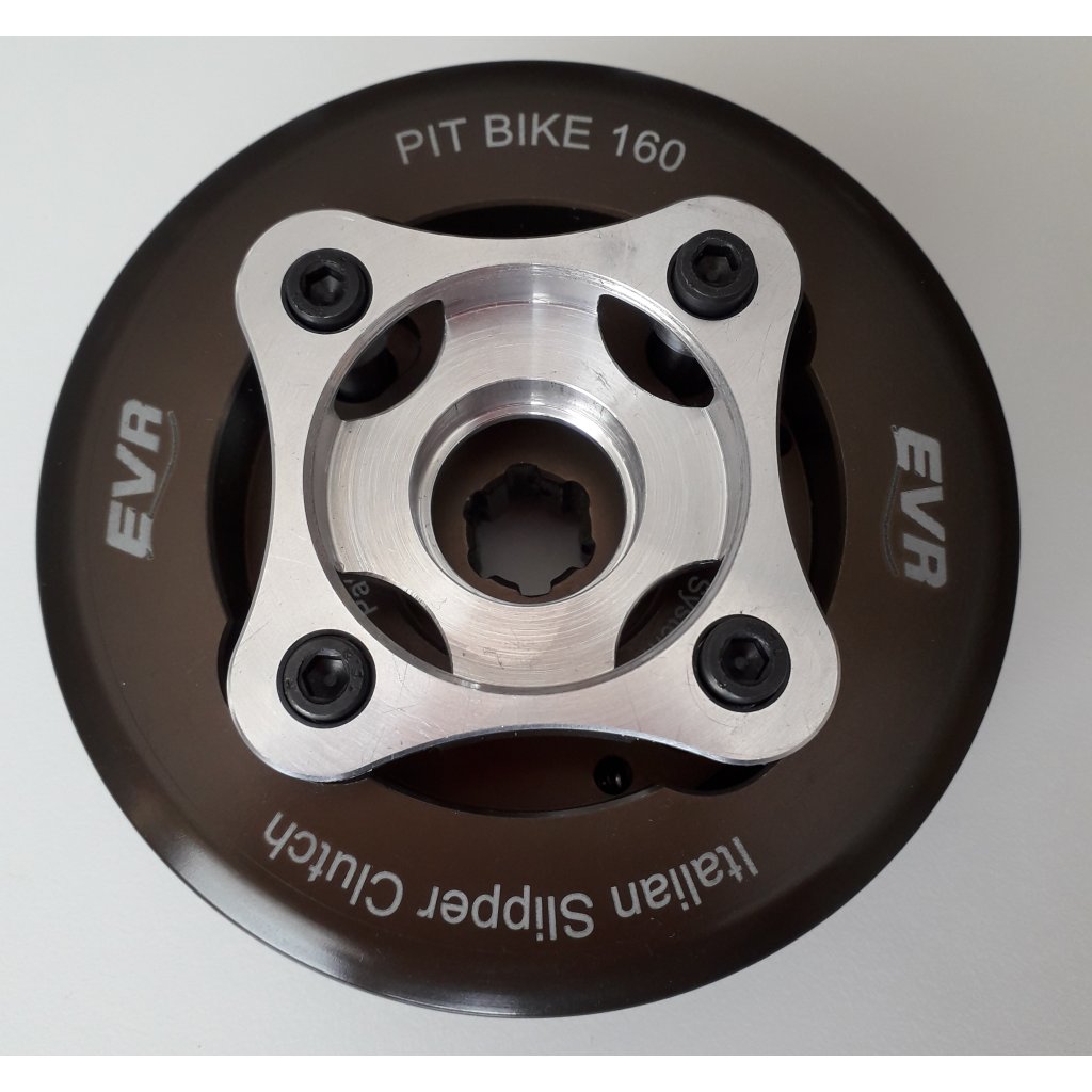 Spojka EVR je velmi kvalitní součástka vyrobená ze vzácných materiálů, jako je ergal, díky kterým je mnohem lehčí než originální spojka (OEM) s povrchovou úpravou na nejvyšší úrovni a řemeslným zpracováním. Vybavení vašeho pitbike touto spojkou umožňuje zlepšení ovladatelnosti a výkonu a také prodloužení životnosti motoru. Nevyžaduje seřízení ani častou údržbu.