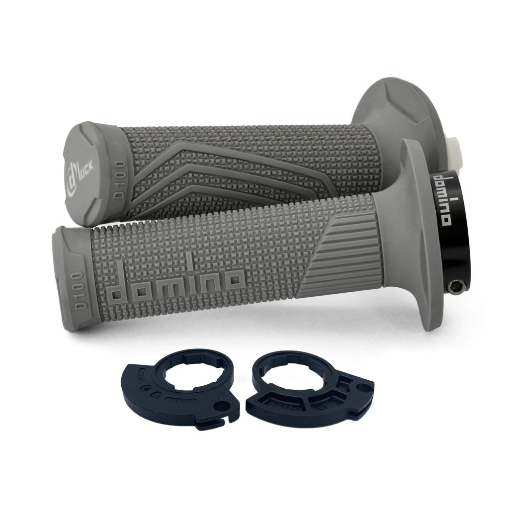 gripy LOCK-ON D100 (offroad) délka 125/130 mm (2 vačky), DOMINO (šedé)