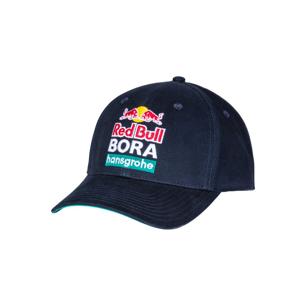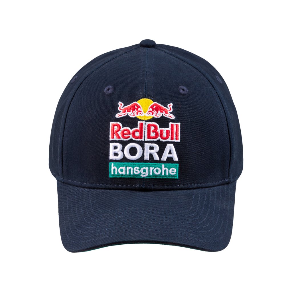 Týmová kšiltovka cyklistického týmu Red Bull Bora Hansgrohe. Tmavě modrá kšiltovka Red Bull Bora Hansgrohe doplněná vyšitým logem na přední straně.