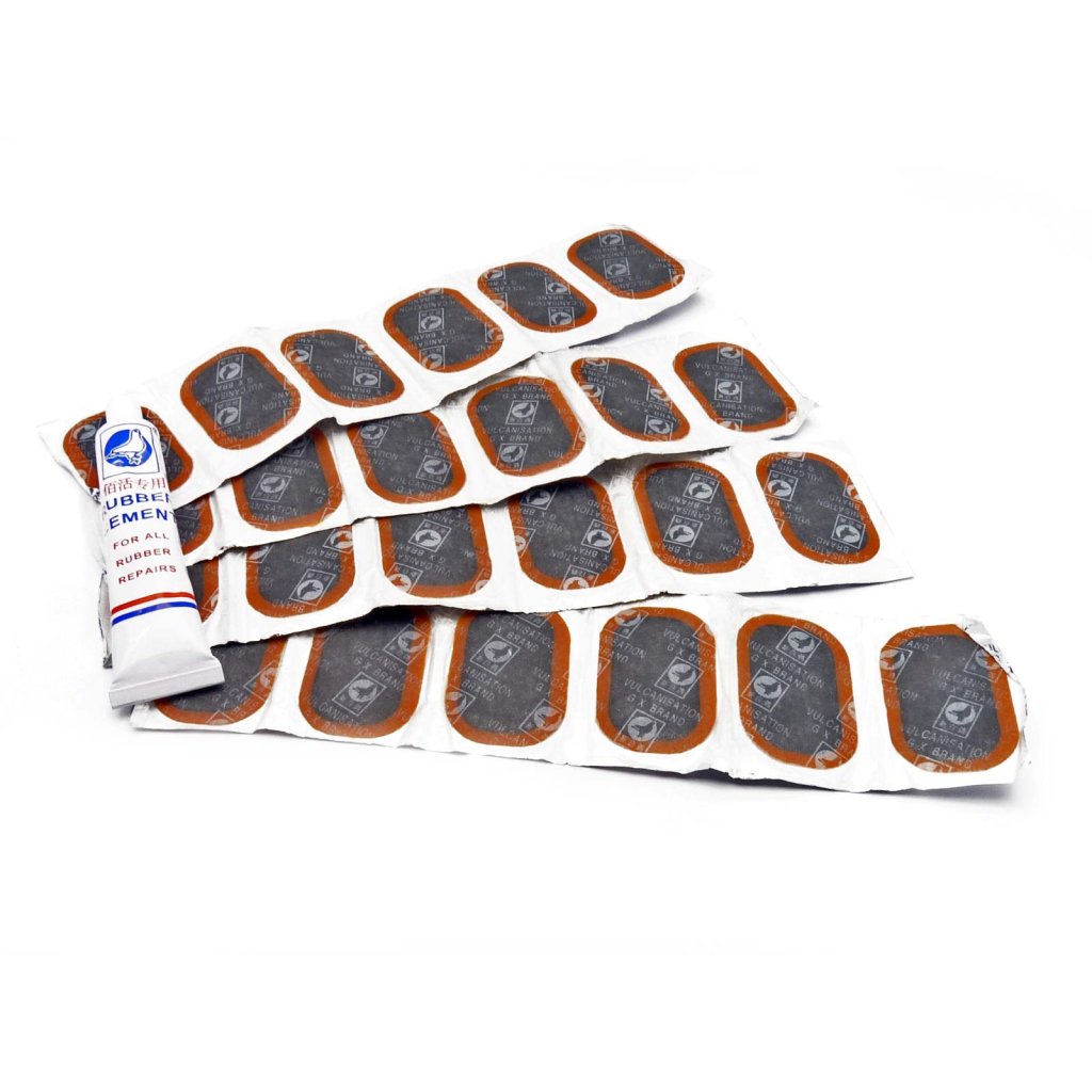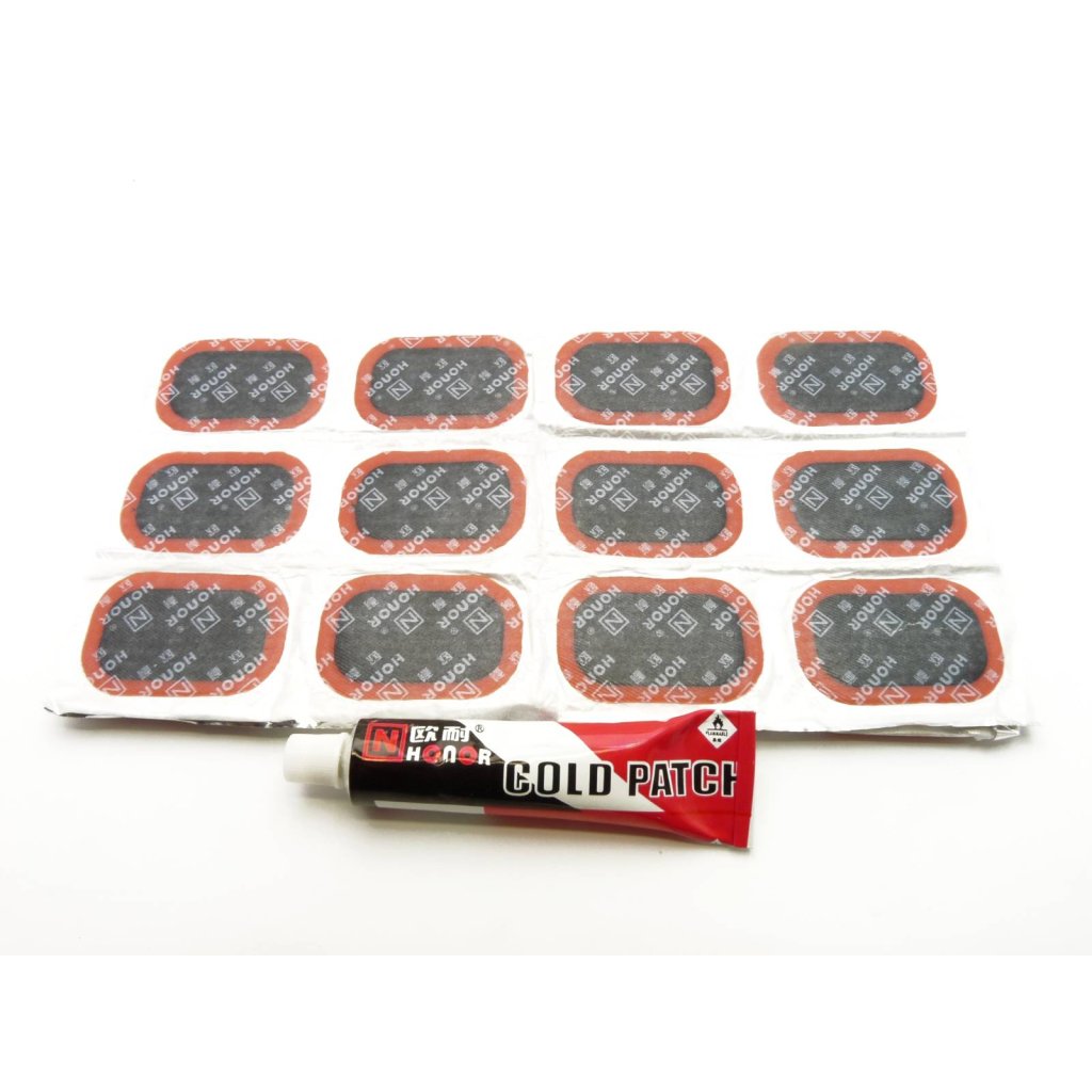 originální pitbike Tomanon; lepení na duše, obsahuje 24 plátků(34x52mm) a lepidlo