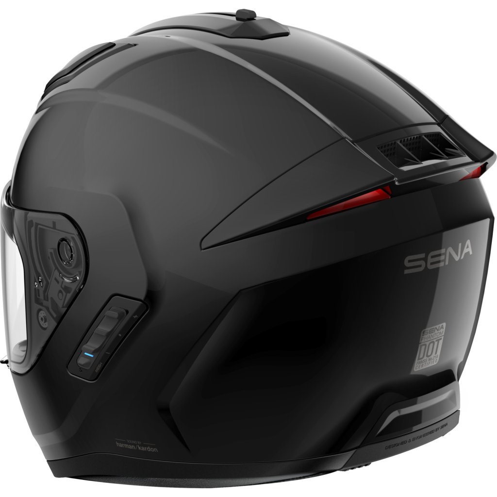 - Zadní světlo má 3 módy a vůbec poprvé u SENY reaguje na brzdění, kdy svítí jestě jasněji. Nastavuje se v aplikaci SENA Motorcycles
