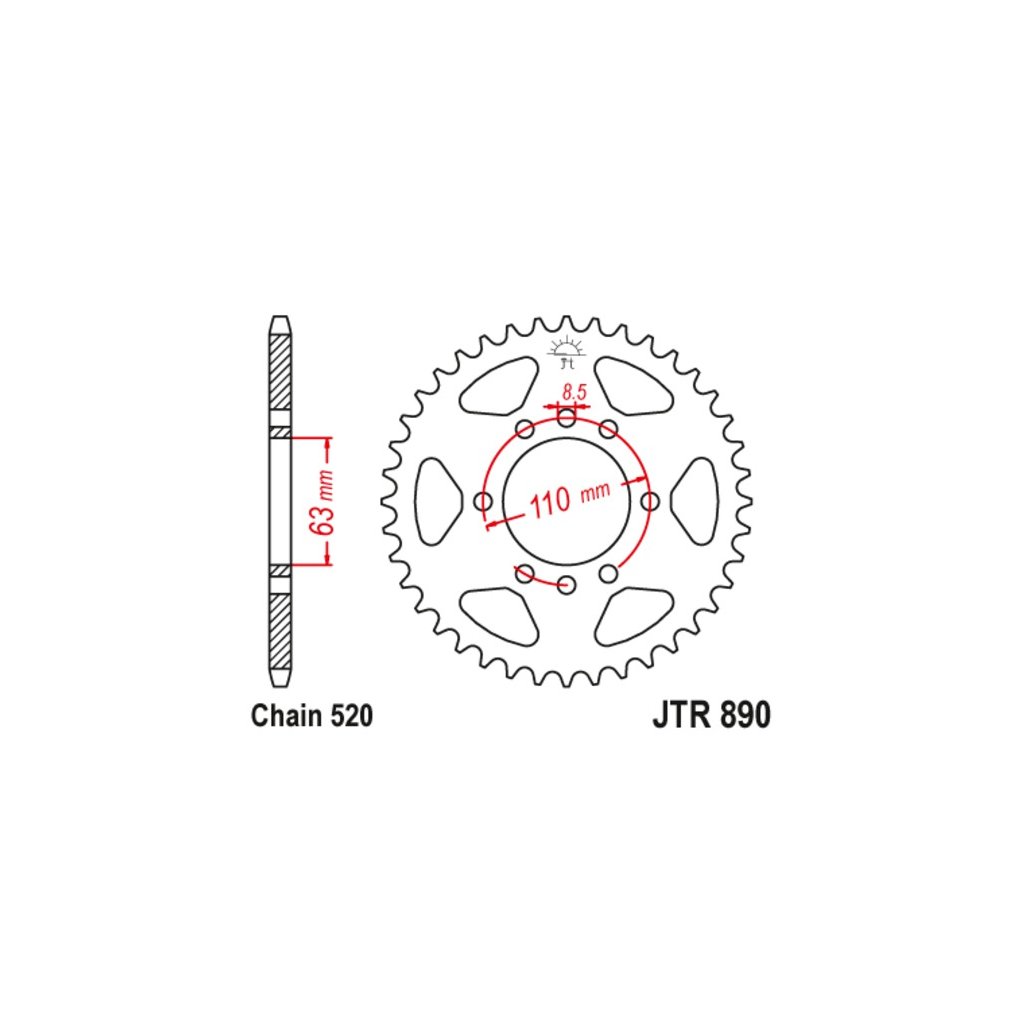 ocelová rozeta pro sekundární řetězy typu 520, JT (45 zubů)