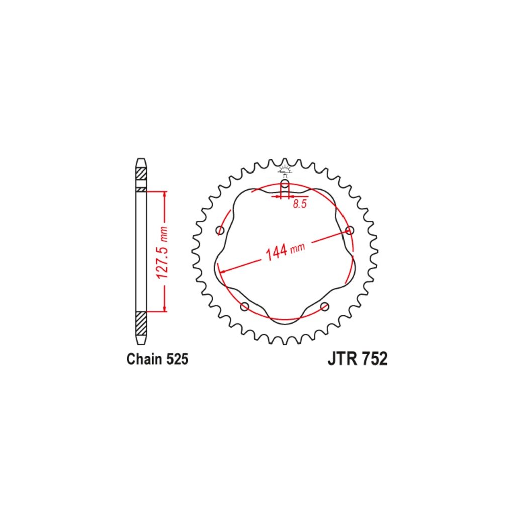 ocelová rozeta pro sekundární řetězy typu 525, JT (42 zubů)