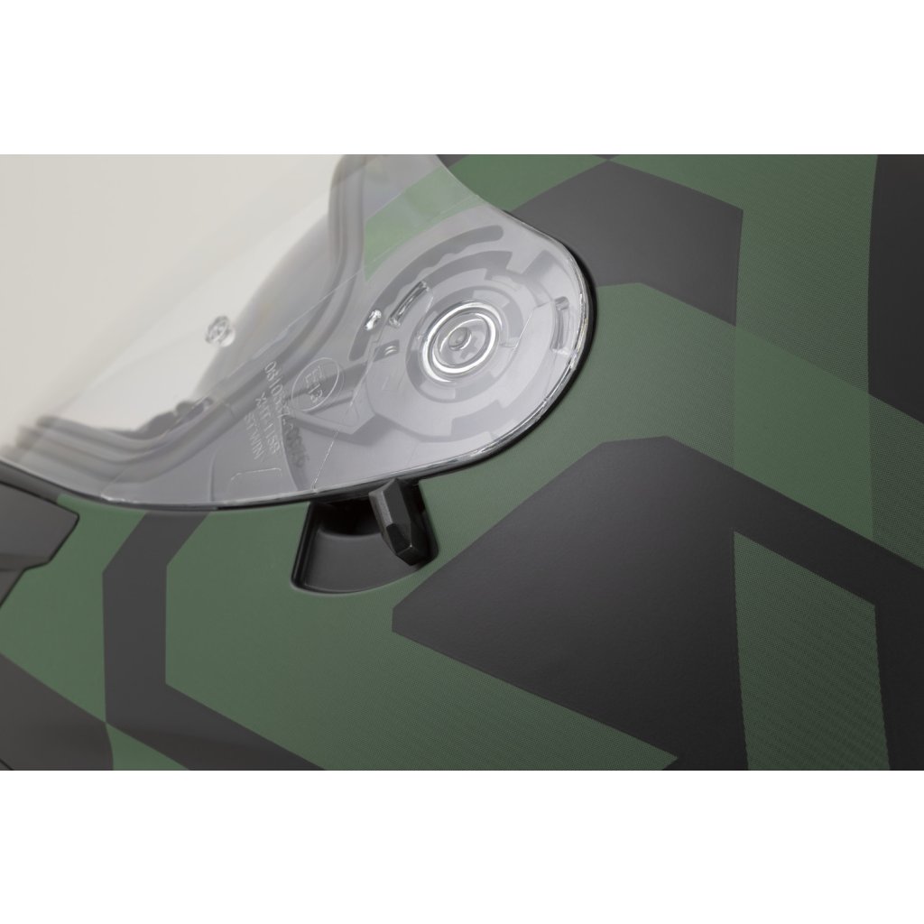 - Rychloodepínací mechanismus plexi s více polohami nastavení pozice a jazýčkem pro docvaknutí plexi v zavřené pozici.