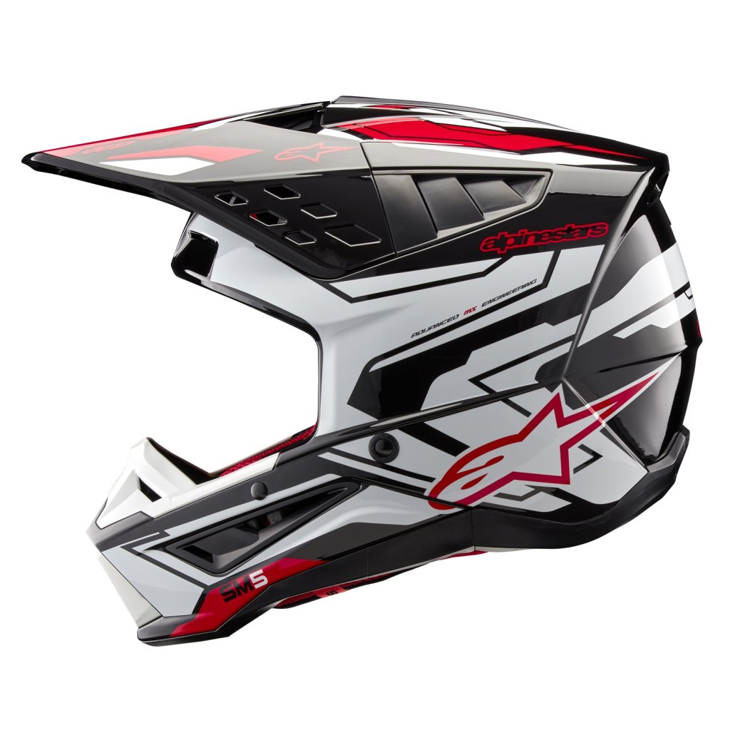 Model přilby S-M5 je výsledkem více než 5-ti let intenzivního zkoumání, vývoje a testování. Cílem bylo zhotovení přilby, která bude bezpečná a navržená tak, aby poskytla optimální kombinaci ochrany a komfortu. Lehká skořepina představuje vstřikovaný termoplast ze speciální směsi polymeru, která je vstřikovaná v různých tloušťkách na potřebných místech. Díky tomu je dosaženo skvělé ochrany proti rázovým silám na potřebných plochách s dobrým poměrem hmotnosti přilby. Vícepanelové jádro přilby s EPS panely o pěti různých hustotách zajišťuje správnou hustotu EPS v konkrétní části přilby. Mezi další důležité přednosti patří konstrukce polstrování ve spodních/bočních partiích přilby v oblasti límce, které zajišťuje efektivní roznesení sil přenášených na horní oblast klíční kosti. Přilba obsahuje kšilt s patentovaným mechanismem rychloodepínání kšiltu v případě pádu, stejně jako u vyšších modelů z nabídky terénních přileb ALPINESTARS.