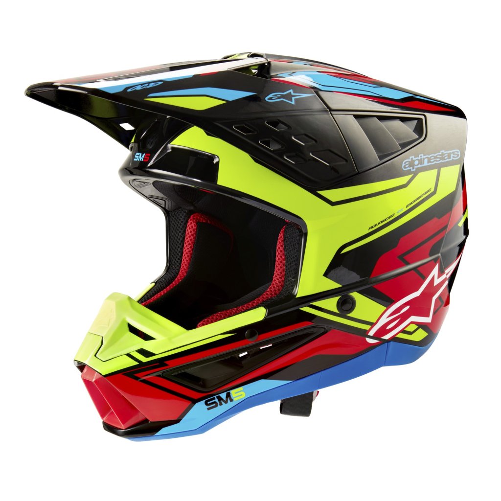 Model přilby S-M5 je výsledkem více než 5-ti let intenzivního zkoumání, vývoje a testování. Cílem bylo zhotovení přilby, která bude bezpečná a navržená tak, aby poskytla optimální kombinaci ochrany a komfortu. Lehká skořepina představuje vstřikovaný termoplast ze speciální směsi polymeru, která je vstřikovaná v různých tloušťkách na potřebných místech. Díky tomu je dosaženo skvělé ochrany proti rázovým silám na potřebných plochách s dobrým poměrem hmotnosti přilby. Vícepanelové jádro přilby s EPS panely o pěti různých hustotách zajišťuje správnou hustotu EPS v konkrétní části přilby. Mezi další důležité přednosti patří konstrukce polstrování ve spodních/bočních partiích přilby v oblasti límce, které zajišťuje efektivní roznesení sil přenášených na horní oblast klíční kosti. Přilba obsahuje kšilt s patentovaným mechanismem rychloodepínání kšiltu v případě pádu, stejně jako u vyšších modelů z nabídky terénních přileb ALPINESTARS.