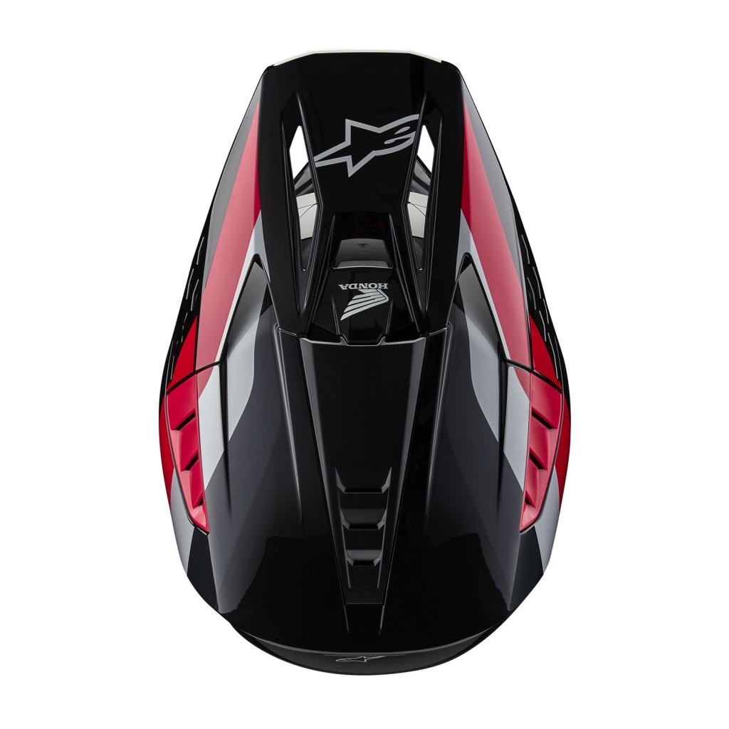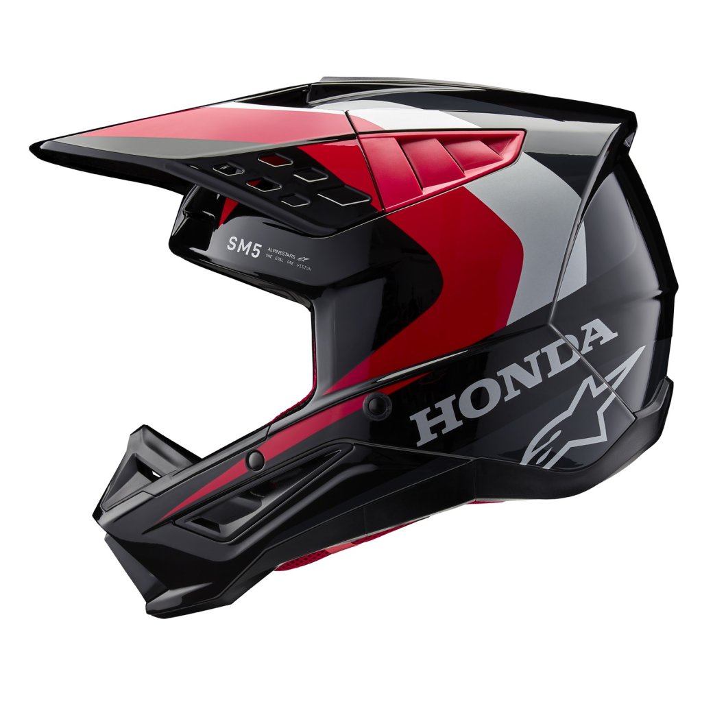 Model přilby S-M5 je výsledkem více než 5-ti let intenzivního zkoumání, vývoje a testování. Výsledkem je přilba, která poskytuje optimální kombinaci ochrany a komfortu. Lehká skořepina představuje vstřikovaný termoplast ze speciální směsi polymeru, která je vstřikovaná v různých tloušťkách na potřebných místech. Díky tomu je dosaženo skvělé ochrany proti rázovým silám na potřebných plochách s dobrým poměrem hmotnosti přilby. Vícepanelové jádro přilby s EPS panely o pěti různých hustotách zajišťuje správnou hustotu EPS v konkrétní části přilby. Mezi další důležité přednosti patří konstrukce polstrování ve spodních/bočních partiích přilby v oblasti límce, které zajišťuje efektivní roznesení sil přenášených na horní oblast klíční kosti. Přilba obsahuje kšilt s patentovaným mechanismem rychloodepínání kšiltu v případě pádu, stejně jako u vyšších modelů z nabídky terénních přileb ALPINESTARS. Kolekce ve spolupráci se značkou HONDA.