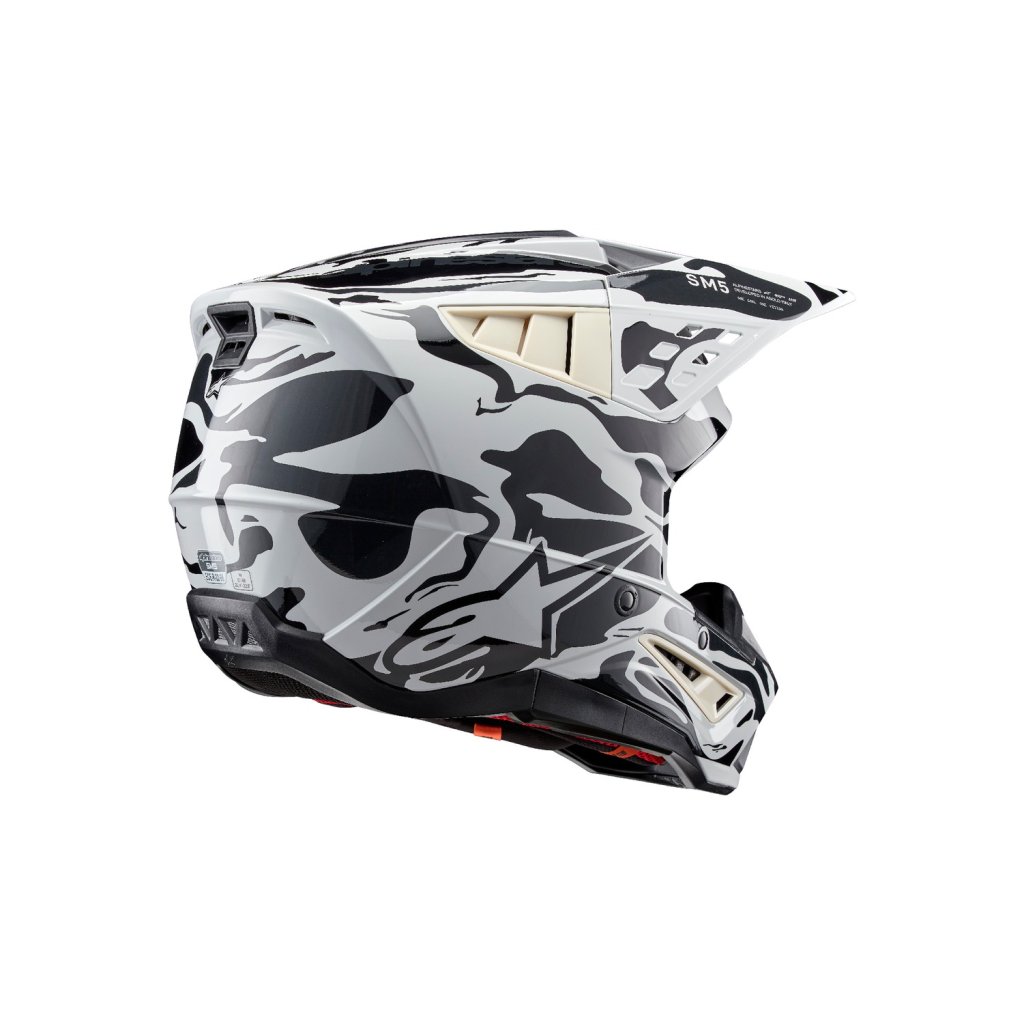 Model přilby S-M5 je výsledkem více než 5-ti let intenzivního zkoumání, vývoje a testování. Cílem bylo zhotovení přilby, která bude bezpečná a navržená tak, aby poskytla optimální kombinaci ochrany a komfortu. Lehká skořepina představuje vstřikovaný termoplast ze speciální směsi polymeru, která je vstřikovaná v různých tloušťkách na potřebných místech. Díky tomu je dosaženo skvělé ochrany proti rázovým silám na potřebných plochách s dobrým poměrem hmotnosti přilby. Vícepanelové jádro přilby s EPS panely o pěti různých hustotách zajišťuje správnou hustotu EPS v konkrétní části přilby. Mezi další důležité přednosti patří konstrukce polstrování ve spodních/bočních partiích přilby v oblasti límce, které zajišťuje efektivní roznesení sil přenášených na horní oblast klíční kosti. Přilba obsahuje kšilt s patentovaným mechanismem rychloodepínání kšiltu v případě pádu, stejně jako u vyšších modelů z nabídky terénních přileb ALPINESTARS.