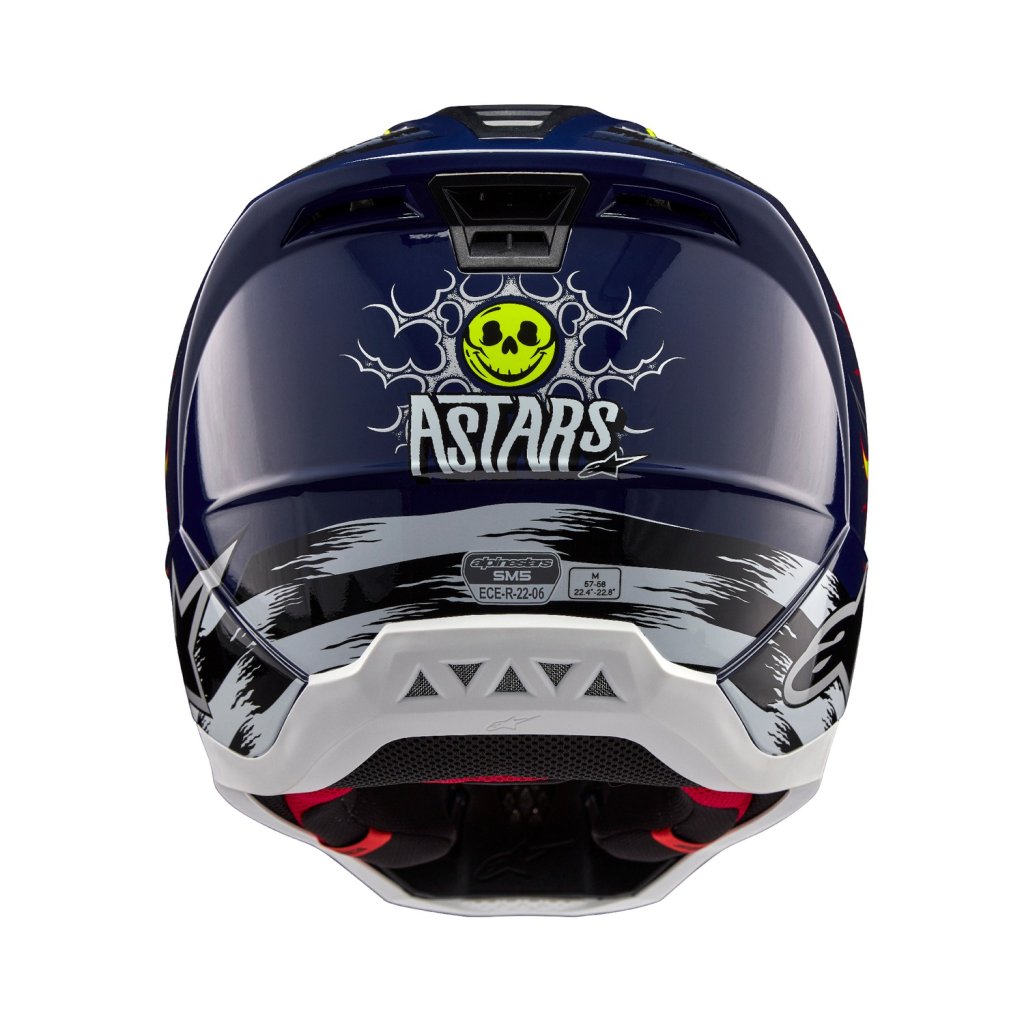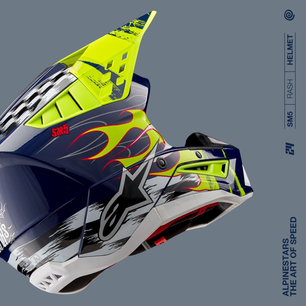 Model přilby S-M5 je výsledkem více než 5-ti let intenzivního zkoumání, vývoje a testování. Cílem bylo zhotovení přilby, která bude bezpečná a navržená tak, aby poskytla optimální kombinaci ochrany a komfortu. Lehká skořepina představuje vstřikovaný termoplast ze speciální směsi polymeru, která je vstřikovaná v různých tloušťkách na potřebných místech. Díky tomu je dosaženo skvělé ochrany proti rázovým silám na potřebných plochách s dobrým poměrem hmotnosti přilby. Vícepanelové jádro přilby s EPS panely o pěti různých hustotách zajišťuje správnou hustotu EPS v konkrétní části přilby. Mezi další důležité přednosti patří konstrukce polstrování ve spodních/bočních partiích přilby v oblasti límce, které zajišťuje efektivní roznesení sil přenášených na horní oblast klíční kosti. Přilba obsahuje kšilt s patentovaným mechanismem rychloodepínání kšiltu v případě pádu, stejně jako u vyšších modelů z nabídky terénních přileb ALPINESTARS.