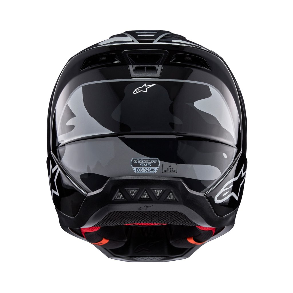 Model přilby S-M5 je výsledkem více než 5-ti let intenzivního zkoumání, vývoje a testování. Cílem bylo zhotovení přilby, která bude bezpečná a navržená tak, aby poskytla optimální kombinaci ochrany a komfortu. Lehká skořepina představuje vstřikovaný termoplast ze speciální směsi polymeru, která je vstřikovaná v různých tloušťkách na potřebných místech. Díky tomu je dosaženo skvělé ochrany proti rázovým silám na potřebných plochách s dobrým poměrem hmotnosti přilby. Vícepanelové jádro přilby s EPS panely o pěti různých hustotách zajišťuje správnou hustotu EPS v konkrétní části přilby. Mezi další důležité přednosti patří konstrukce polstrování ve spodních/bočních partiích přilby v oblasti límce, které zajišťuje efektivní roznesení sil přenášených na horní oblast klíční kosti. Přilba obsahuje kšilt s patentovaným mechanismem rychloodepínání kšiltu v případě pádu, stejně jako u vyšších modelů z nabídky terénních přileb ALPINESTARS.