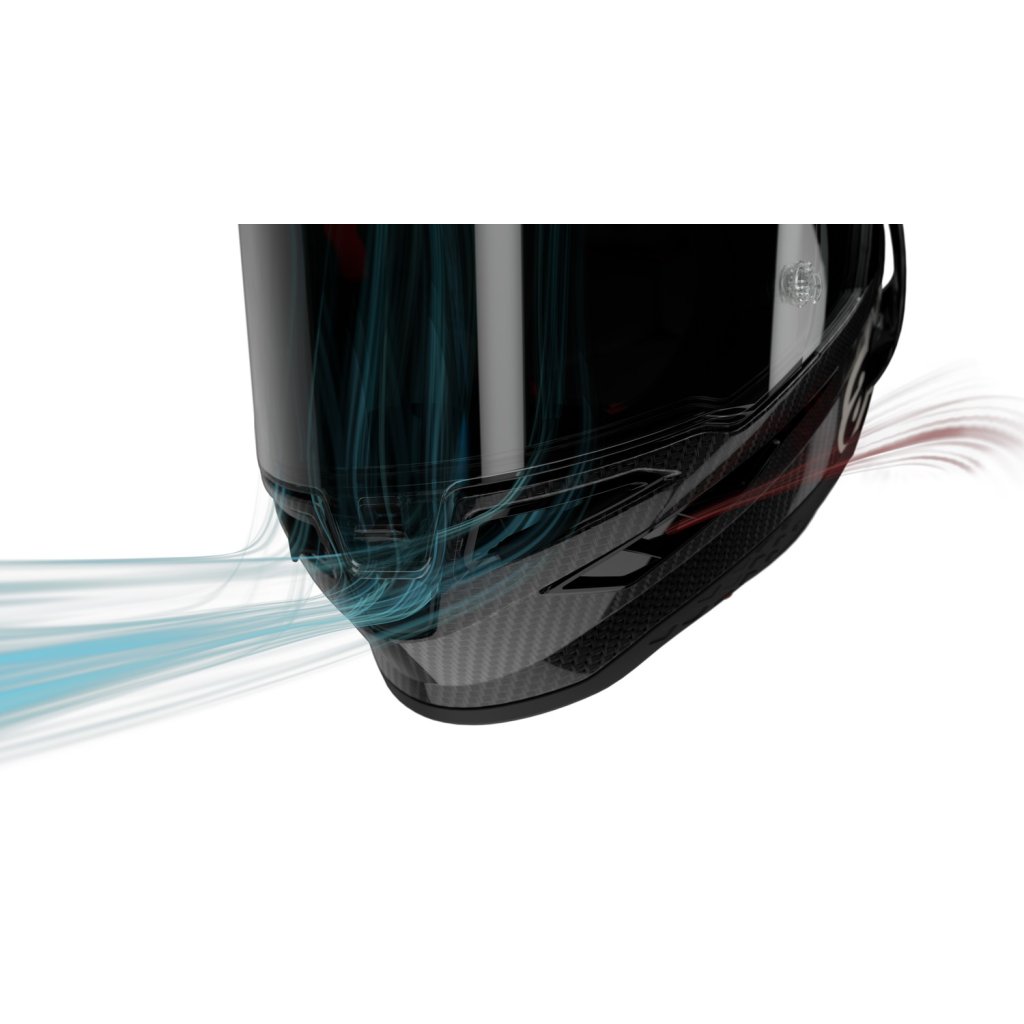 - Jako výsledek celého vývoje aerodynamiky přilby v případě osazeného racing spoileru a bočních stabilizátorů tyto prvky redukují aerodynamický odpor o dodatečných 4,54%.