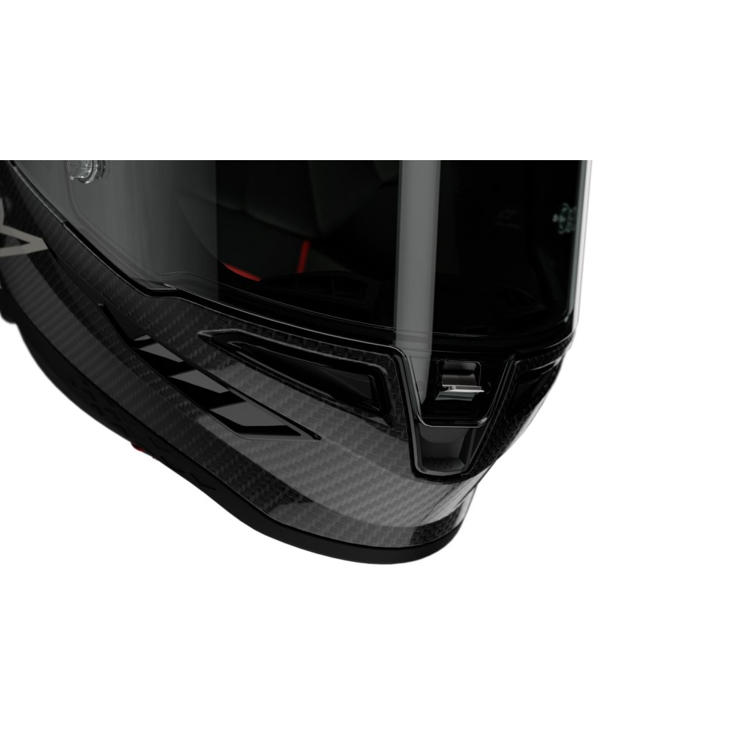 - Boční aerodynamické stabilizátory zajišťují aerodynamickou stabilitu přilby obzvláště v situaci, kdy jezdec řeší průjezd zatáčkou s náklonem a vychýlením těla mimo aerodynamickou ochranu kapotáže supersportovního motocyklu.