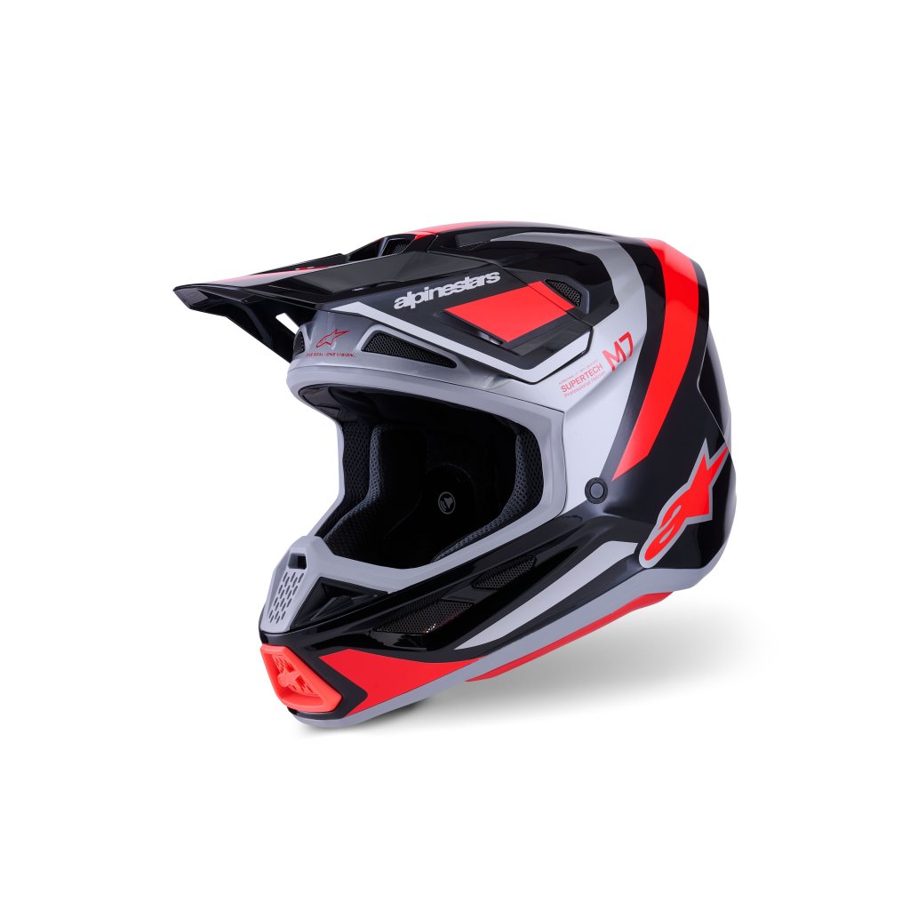 přilba SUPERTECH S-M7 RISE, ALPINESTARS (černá/stříbrná/červená fluo) 2026