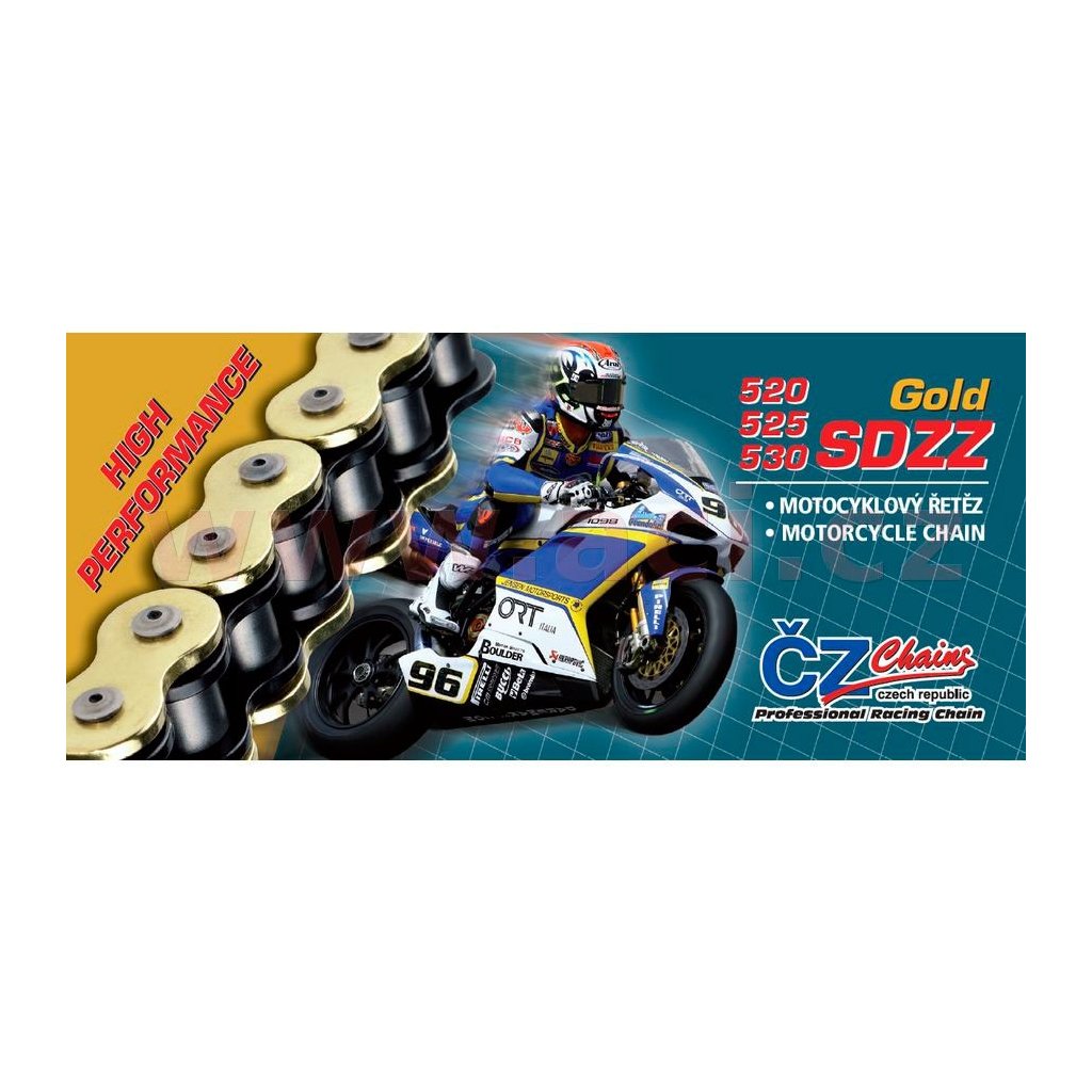 řetěz 525SDZZ, ČZ (barva zlatá, 122 článků vč. nýtovací spojky RIVET)