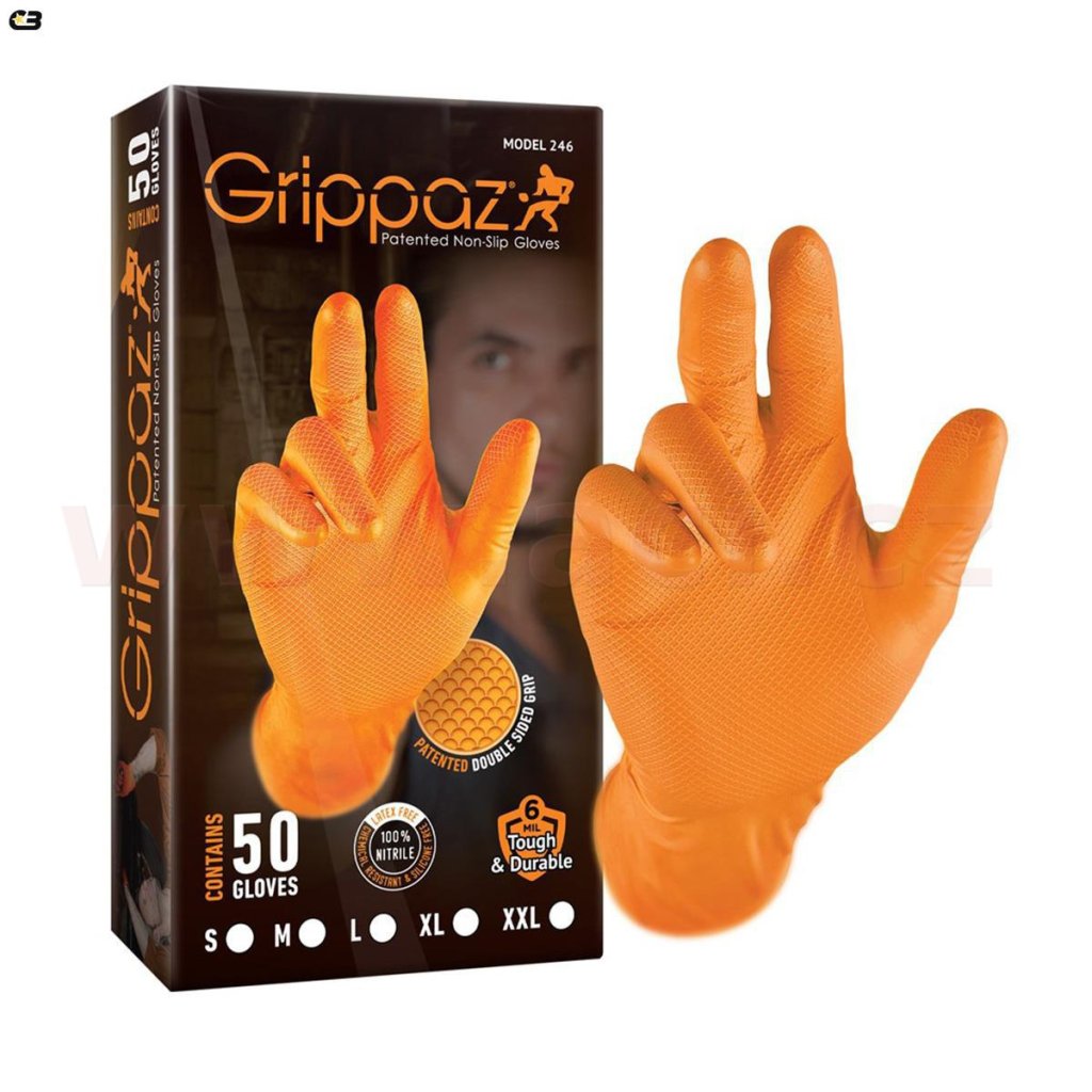 Rukavice nitrilové, silnější vroubkované oranžové GRIPPAZ (50 ks)