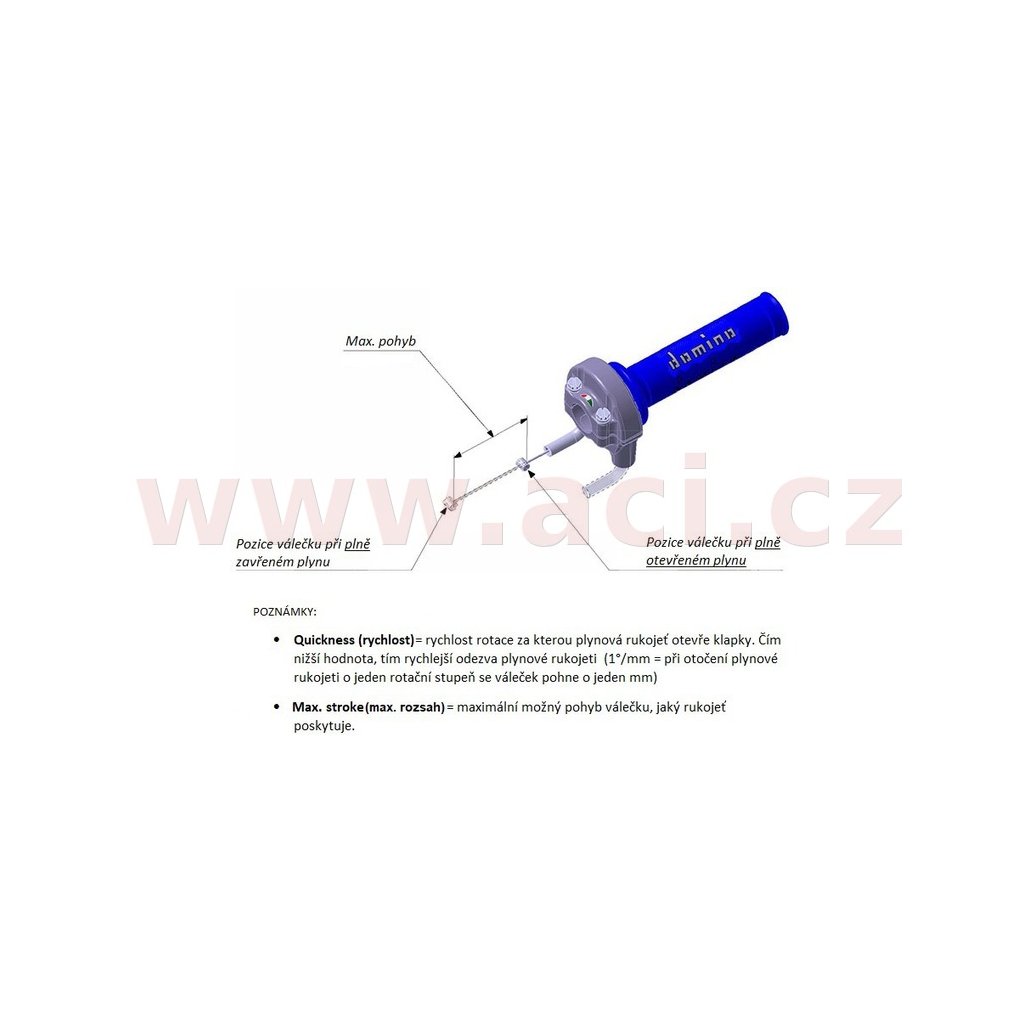 - RYCHLOST: čím nižší hodnota, tím je rychloplyn ostřejší (o kolik stupňů je nutné otočit rukojeť aby se lanko posunulo 1 mm)