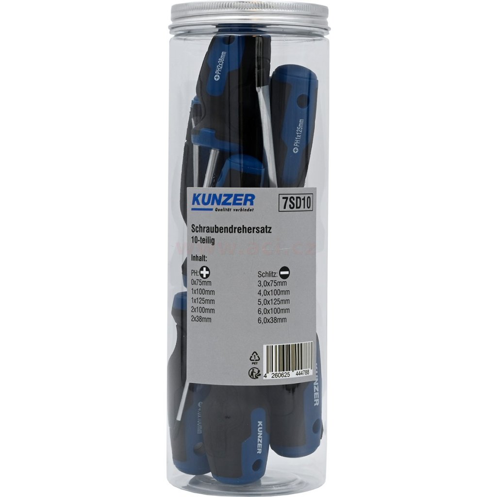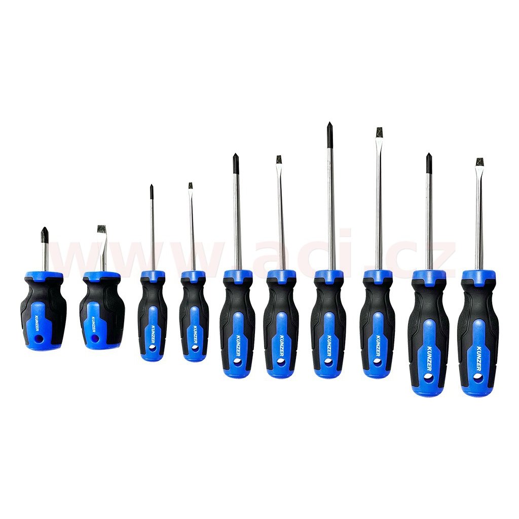 Sada obsahuje různé rozměry šroubováků s ergonomickými rukojeťmi, 5x Philips a 5x plochý šroubovák.