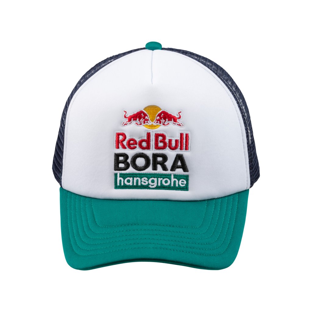 Fanouškovská kšiltovka cyklistického týmu Red Bull Bora Hansgrohe. Vzdušná kšiltovka Red Bull Bora doplněná vyšitým logem na přední straně.