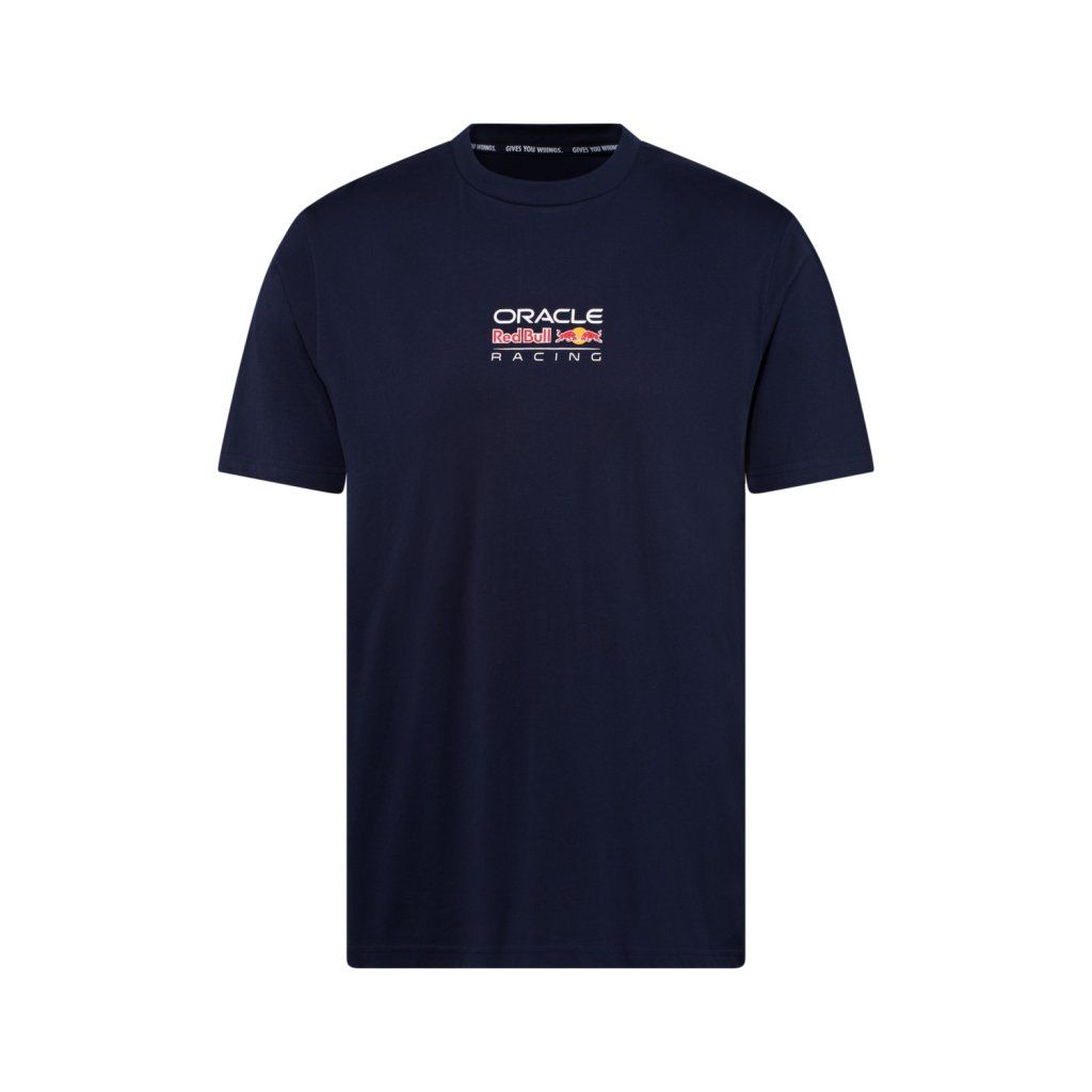 výrazné tmavě modré triko pro fanoušky s logem Oracle Red Bull Racing na hrudi a zádech